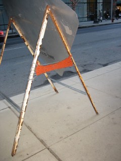We discovered during my critique in this class of previous graffiti weaves that because I constantly travel for work and commute for school, I feel disjointed in each city I find myself; I’m there but I’m not really there. Although I’m in multiple places I am never concretely in that environment. Hence, by having this drive to weave into the city’s surface, I am leaving a bit of myself in that surrounding, essentially forcing myself into the city’s fabric, while trying to find solid ground in that city at that moment. Otherwise, I feel ghostly, as if I don’t really belong anywhere, as if nobody would ever know where I had been.