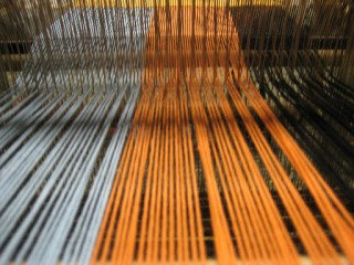 After taking what seemed like an eternity stringing each individual thread through the heddles (note to self: everybody gets a Very thin scarf during the holidays….), I was able to start weaving my weft in. This can be as thick as you want, speeding up the weaving process and making your scarf feel as warm and fuzzy as you want.