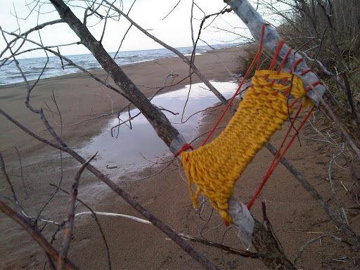 I was curious to see if my little pieces of fabric could stand the test of a brutal winter on the beaches of Lake Michigan, and lo and behold, they did. I actually like how the yarn has been beat down and compressed with water, not to mention the vibrancy of the colours have subdued, mimicking the surroundings.