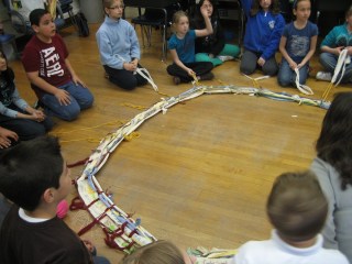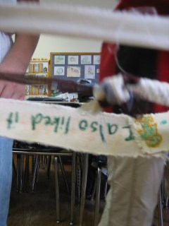 Enter 2nd semester: ‘warp’ & ‘weft’ cannot subsist without each other to form something tangible, just like ‘community’ & ‘people’ cannot exist without each other….. do you see what I’m getting at? Karolina Gnatowski, my professor, saw it, and she helped orchestrate a classroom visit to a Chicago public school to help me realize my idea of children weaving, creating a community together with each other, symbolized by the fabric they each contributed to make, its existence not possible without each other.